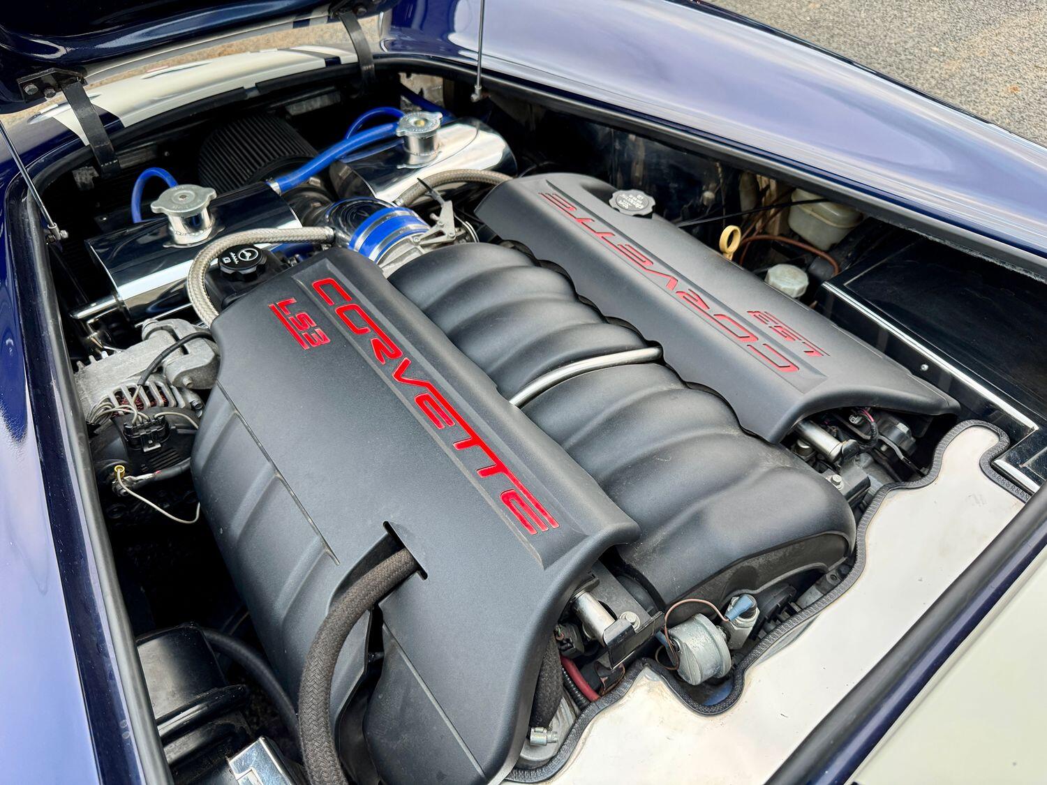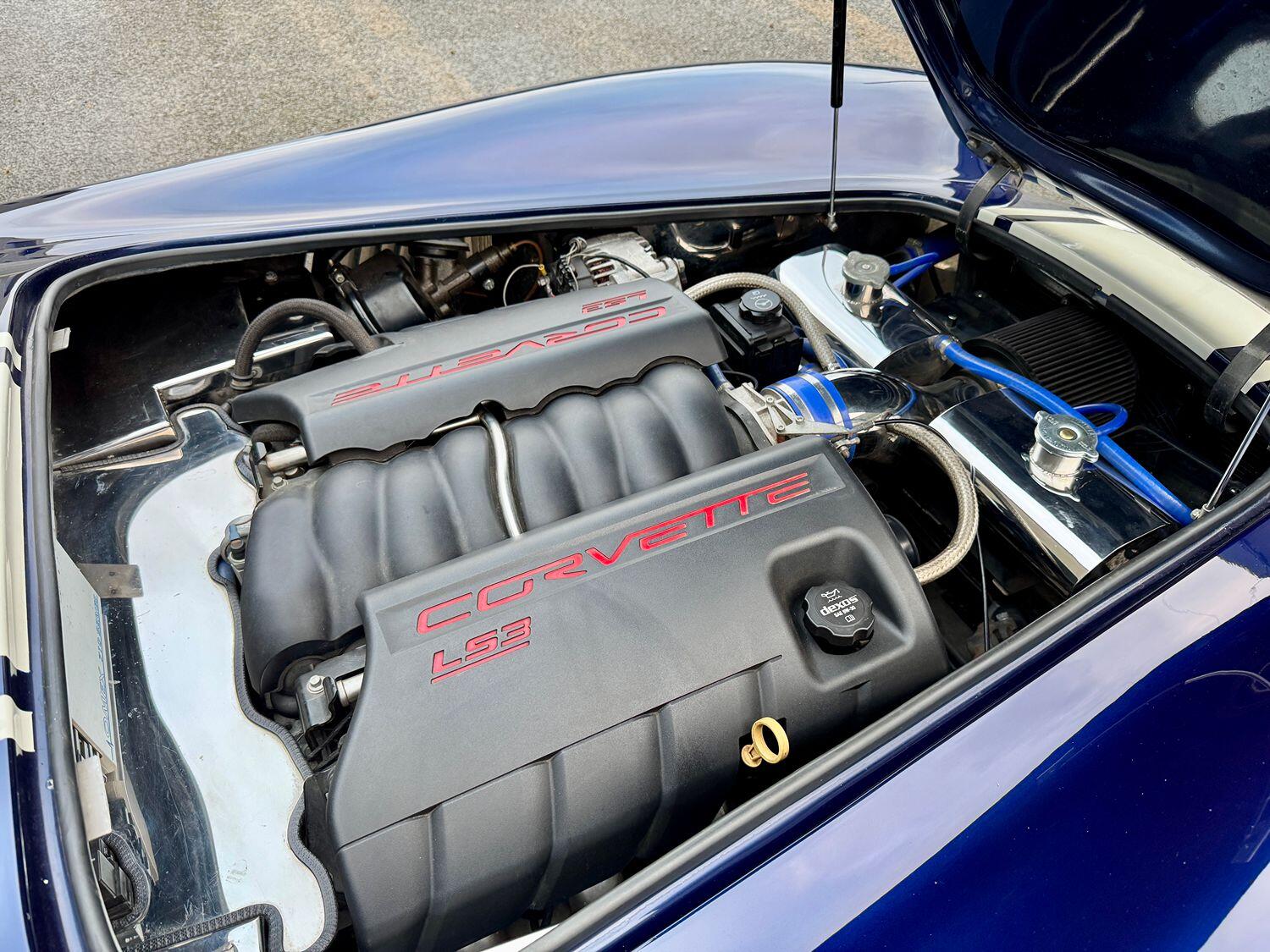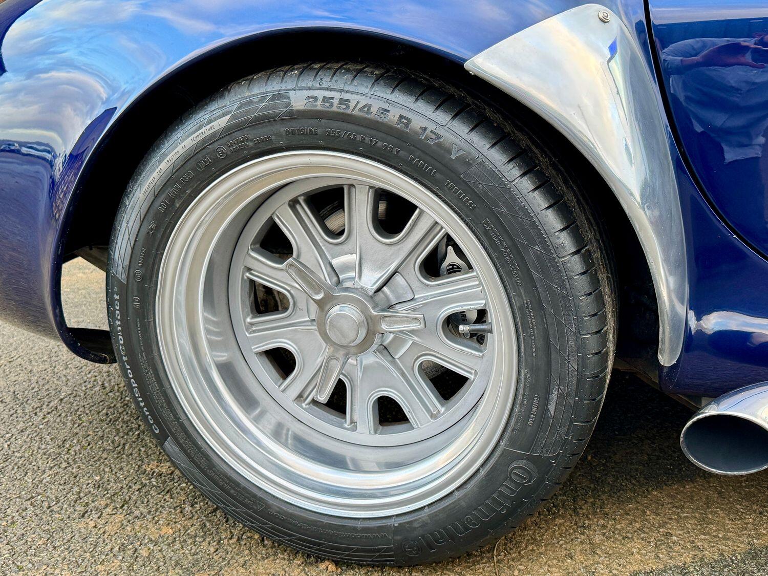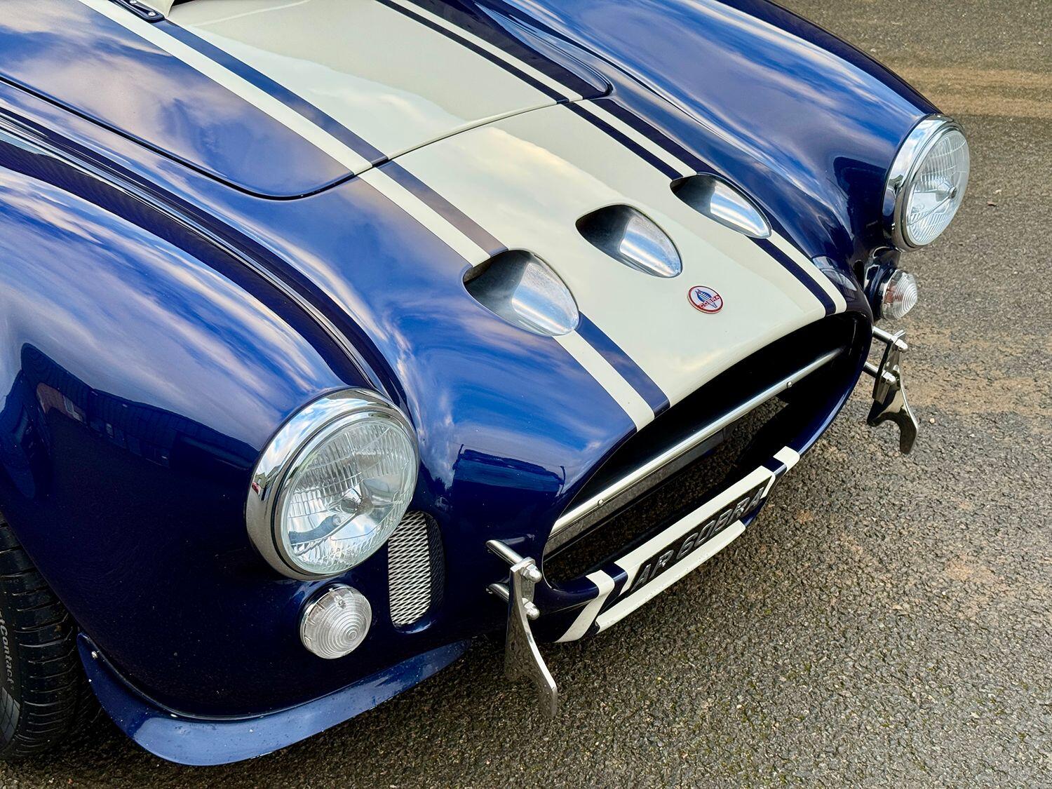Powered by a modern aluminum 6.2 litre Chevy LS3 V8 that offers circa 430bhp and 425 lb/ft of torque. The LS3 is a great powerplant for a Cobra, it’s ECU controlled, lightweight (compared to old school iron block V8’s!) and more efficient thanks to it’s fuel injection, modern seals/gaskets it provides a less ‘hands on’ ownership experience. It has a hydraulically operated clutch so isn’t heavy to operate and has a smooth and strong Tremec 5 speed gearbox.