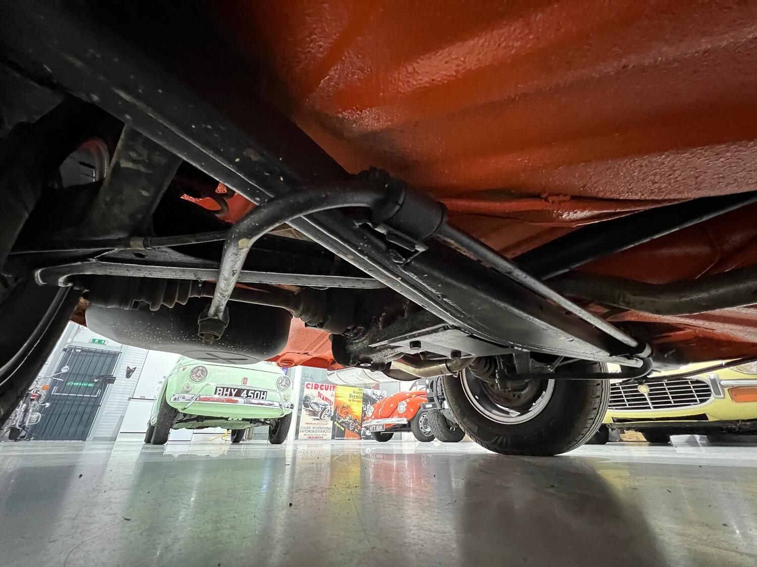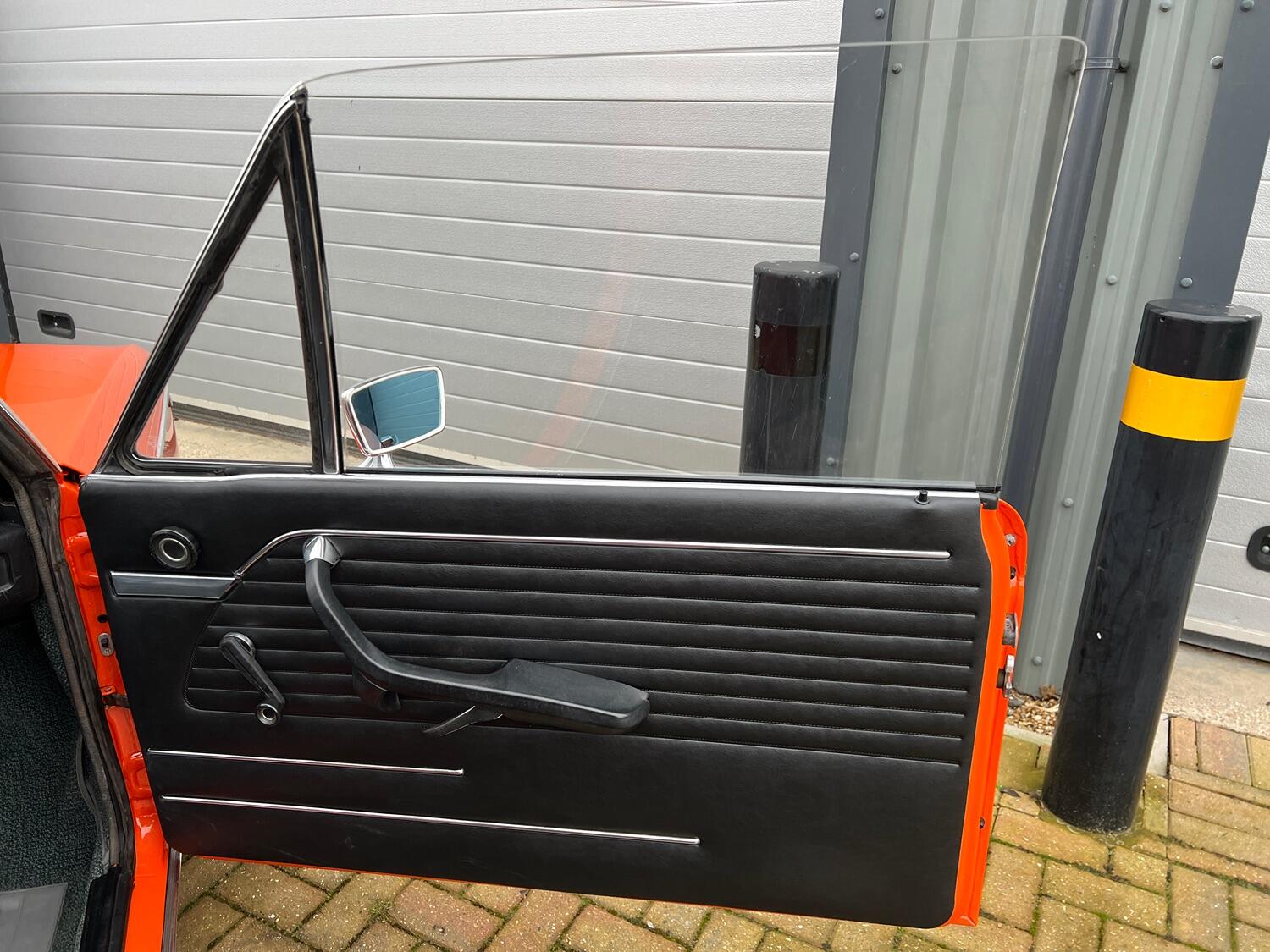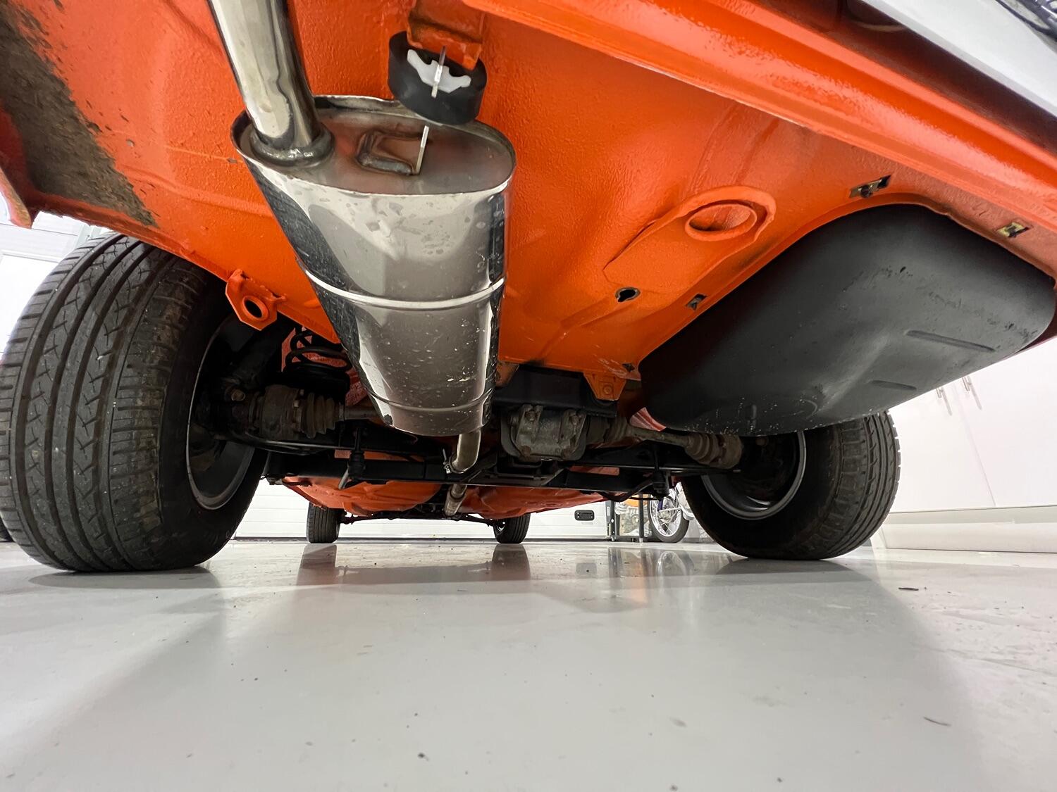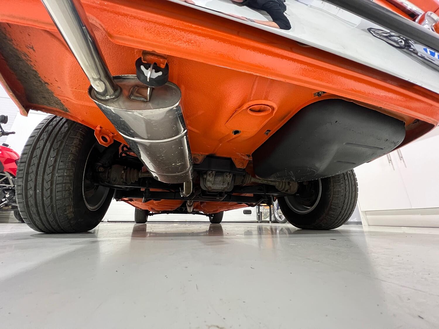Restoration started with the complete overhaul of the front and rear subframes including bushes with the replacement ii front struts. With the subframes off, the under-side was stripped, the wings removed and a new front panel fitted. Two new doors were fitted and with the engine/gear box removed, the engine bay, front and rear wheel arches were undersealed and then over painted Inka Orange as was the original finish (no black wheel arches).