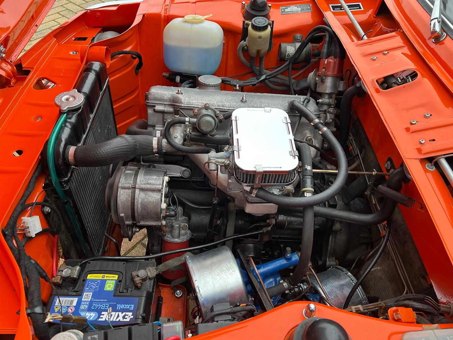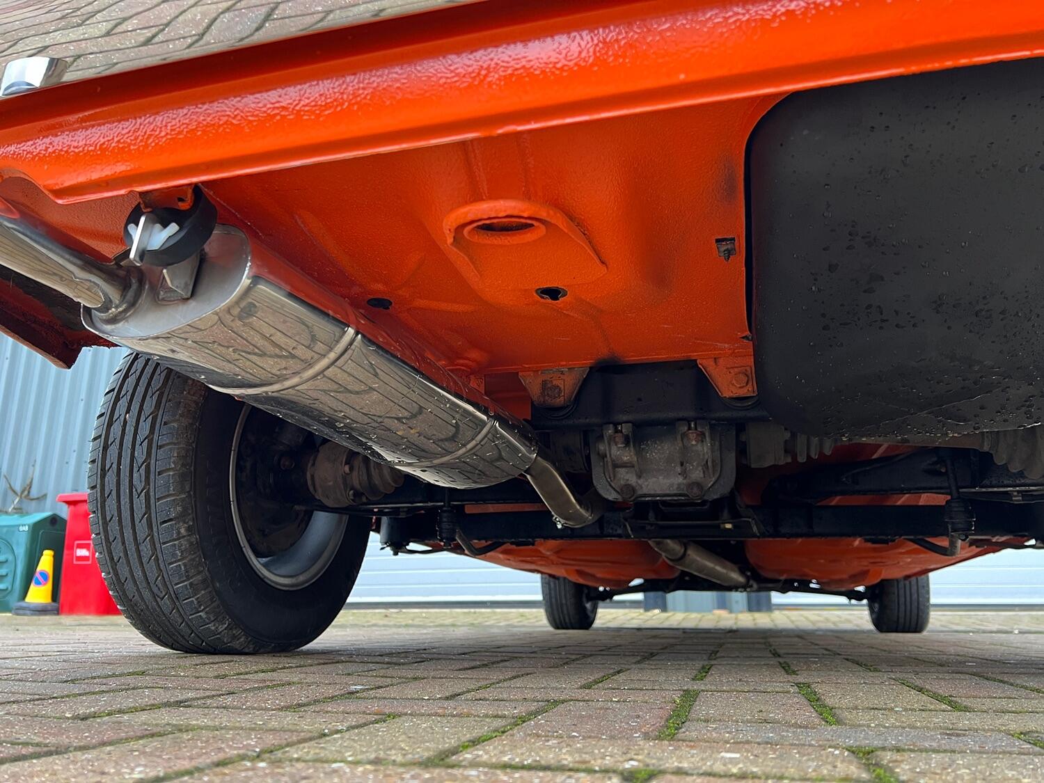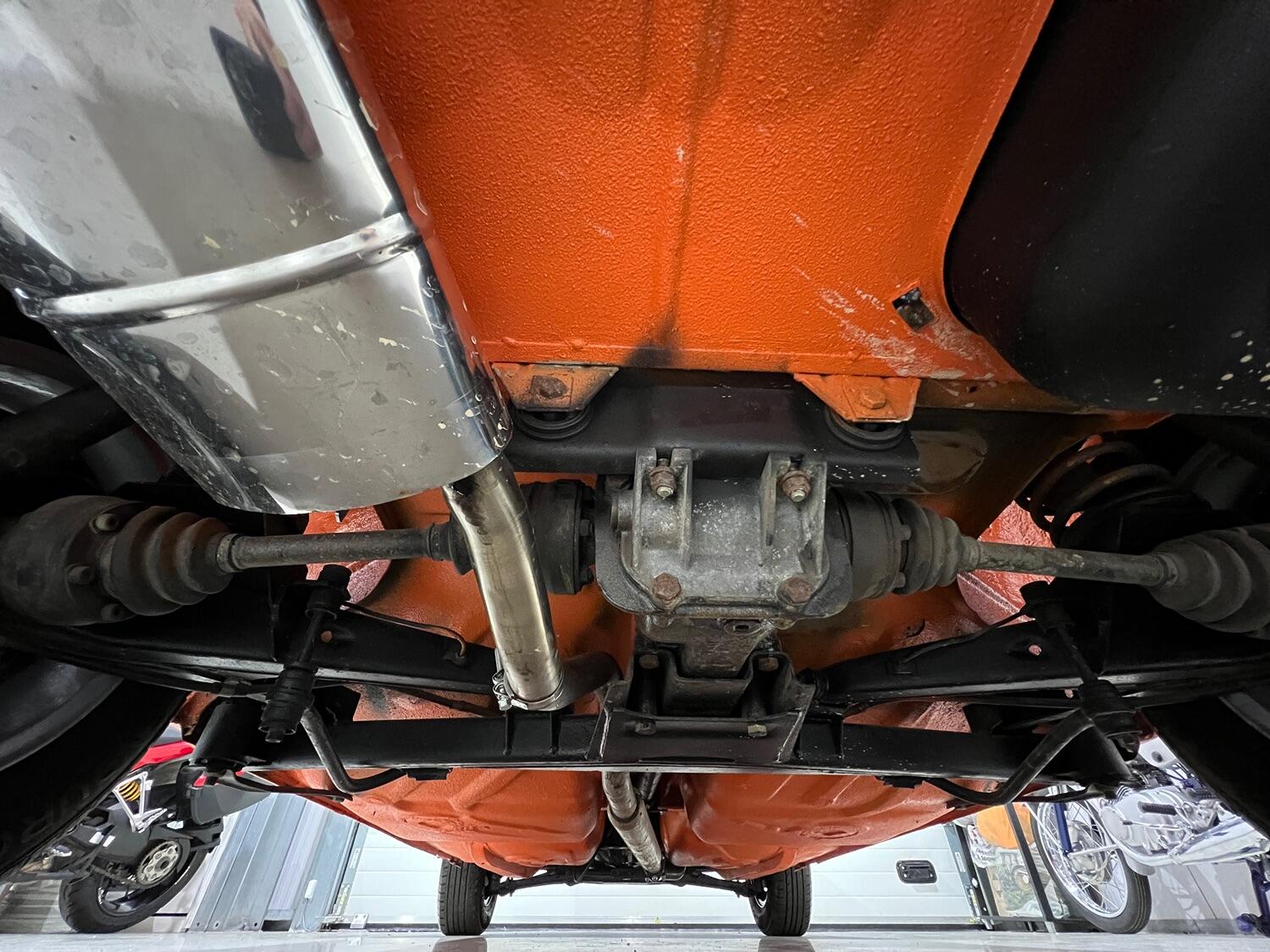 Restoration started with the complete overhaul of the front and rear subframes including bushes with the replacement ii front struts. With the subframes off, the under-side was stripped, the wings removed and a new front panel fitted. Two new doors were fitted and with the engine/gear box removed, the engine bay, front and rear wheel arches were undersealed and then over painted Inka Orange as was the original finish (no black wheel arches).