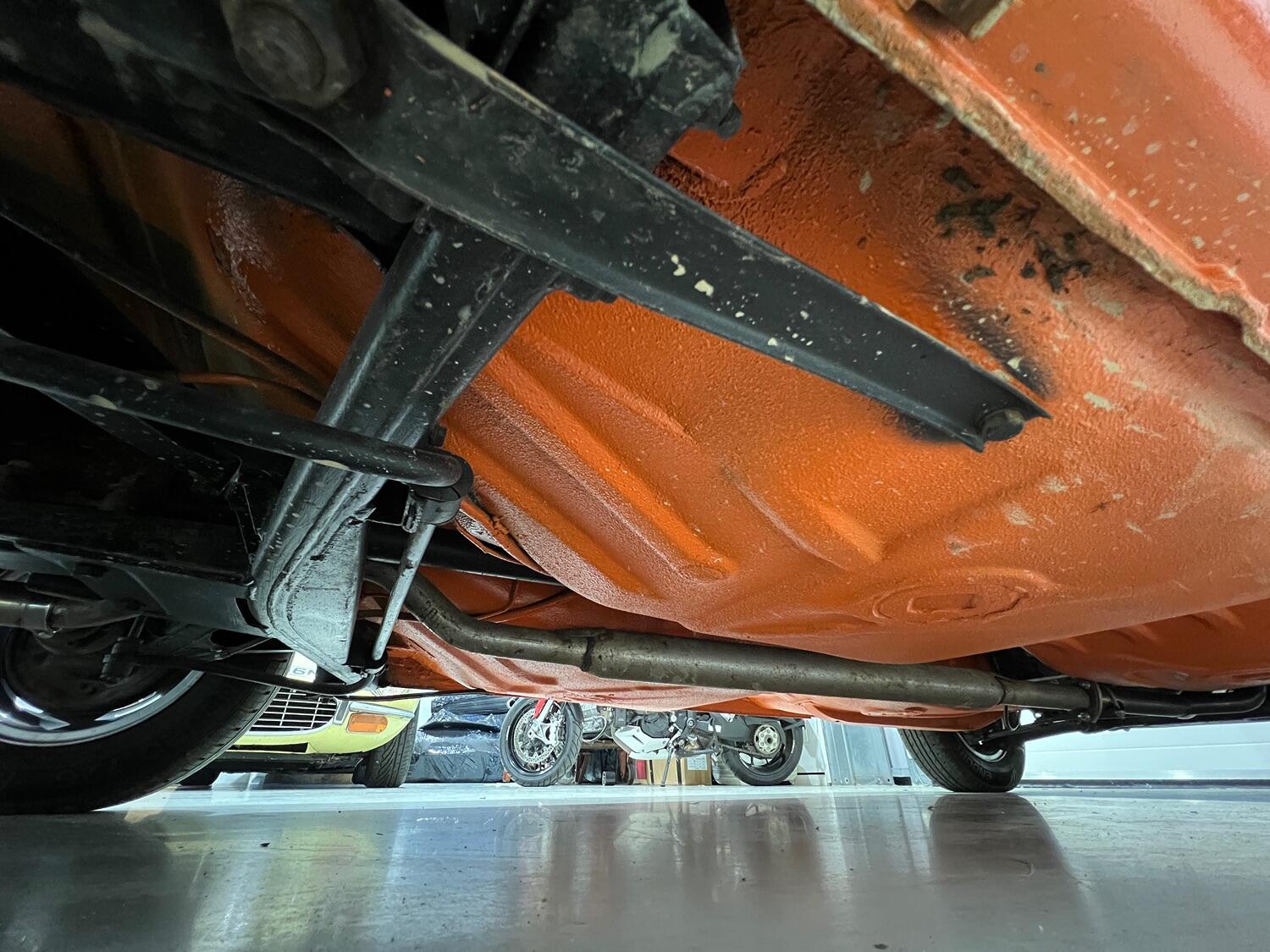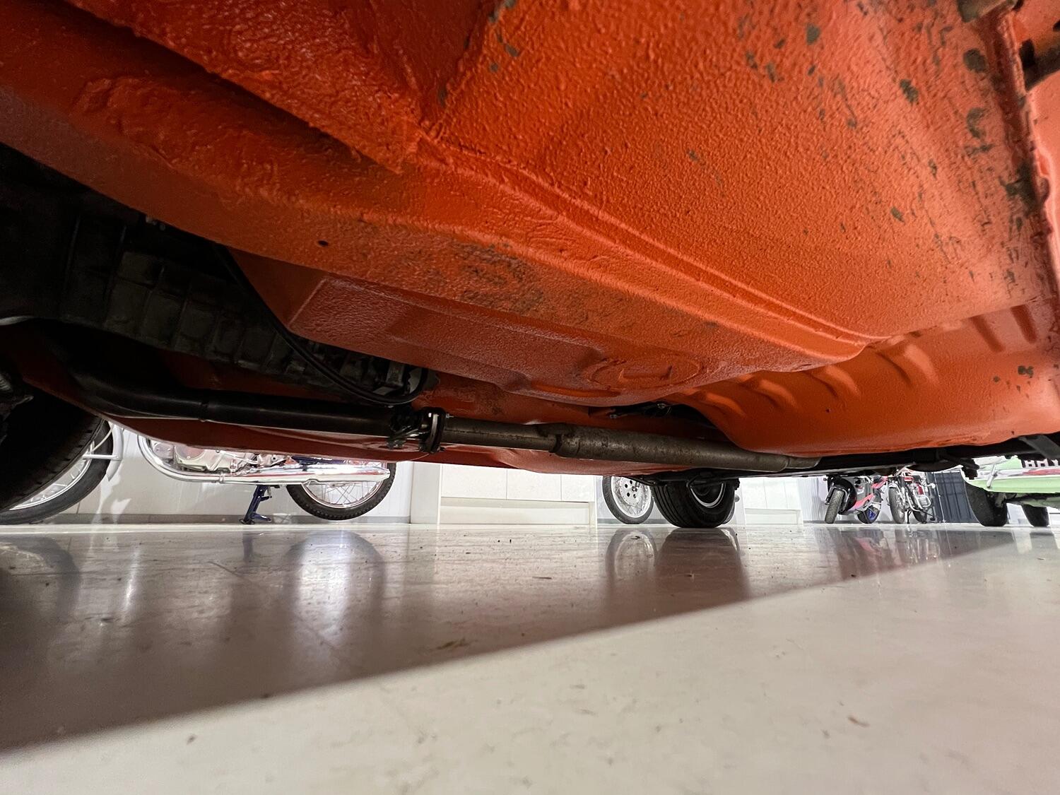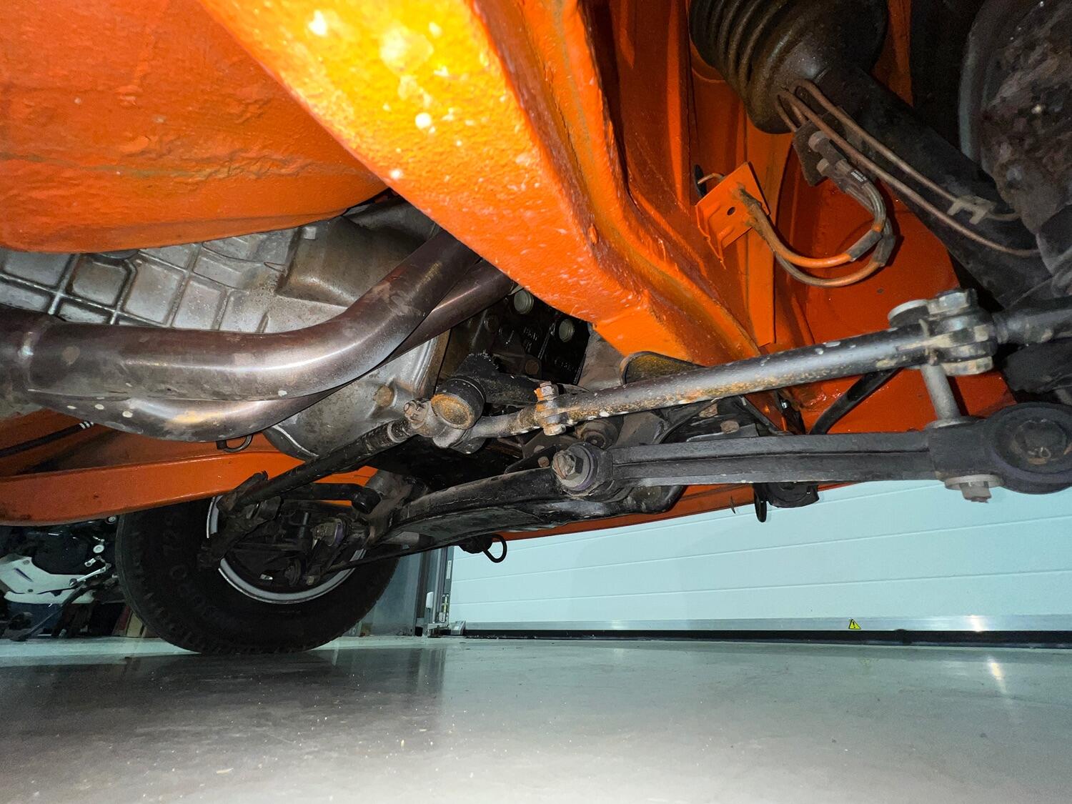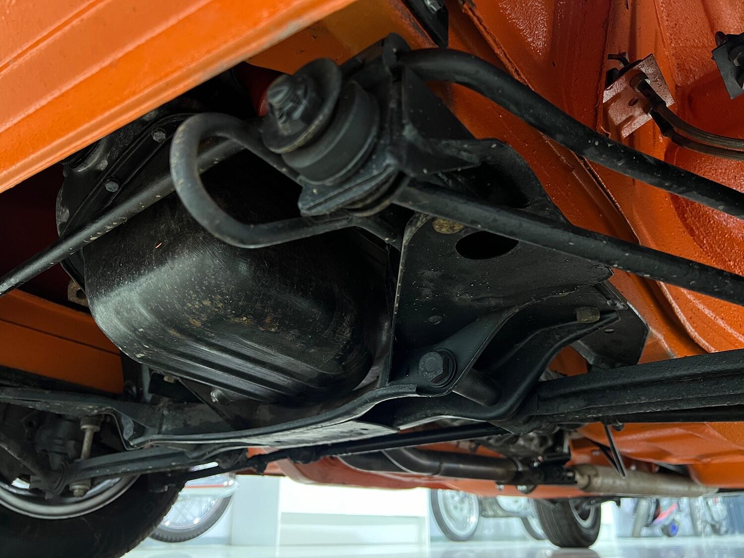 Restoration started with the complete overhaul of the front and rear subframes including bushes with the replacement ii front struts. With the subframes off, the under-side was stripped, the wings removed and a new front panel fitted. Two new doors were fitted and with the engine/gear box removed, the engine bay, front and rear wheel arches were undersealed and then over painted Inka Orange as was the original finish (no black wheel arches).