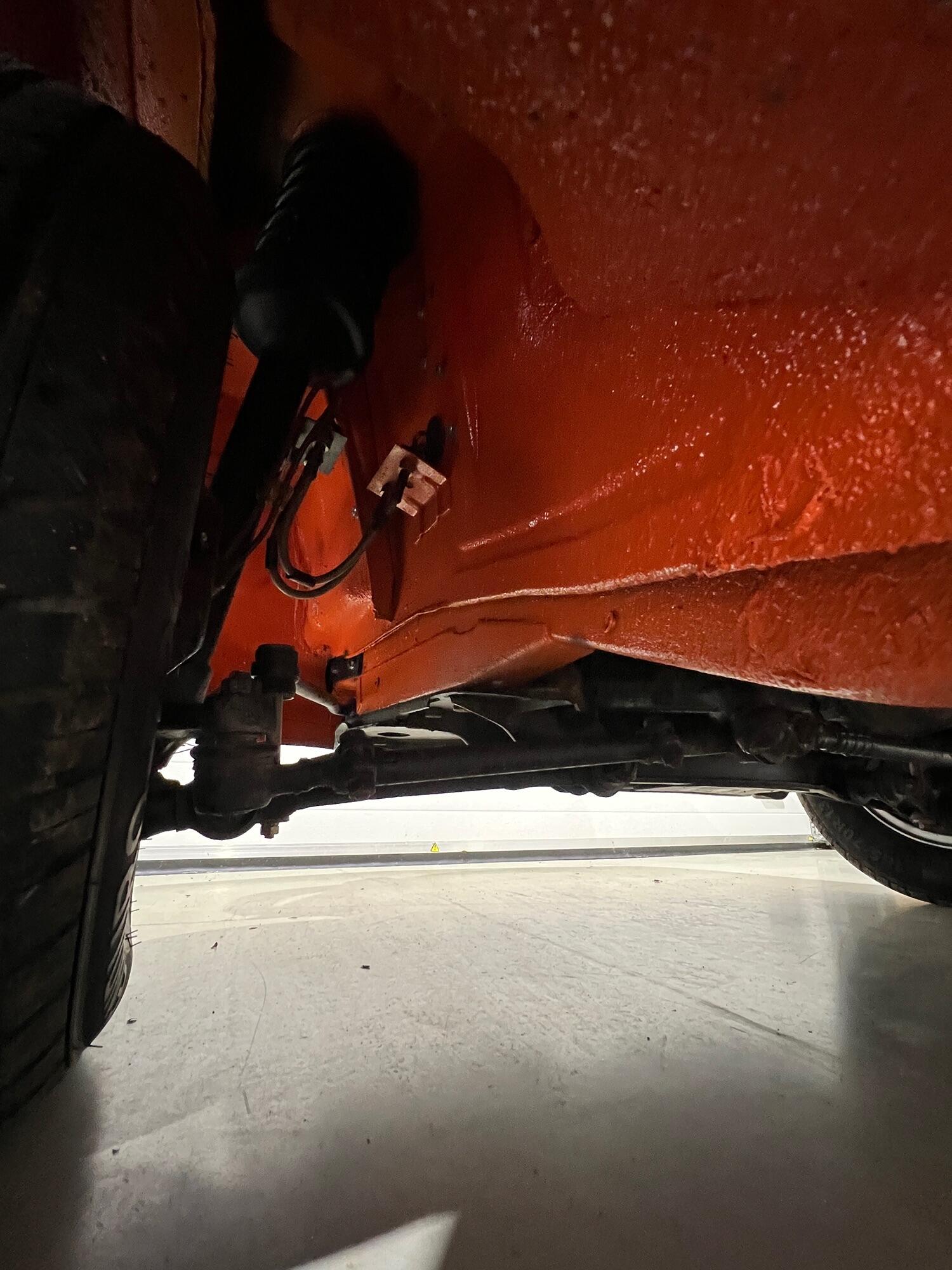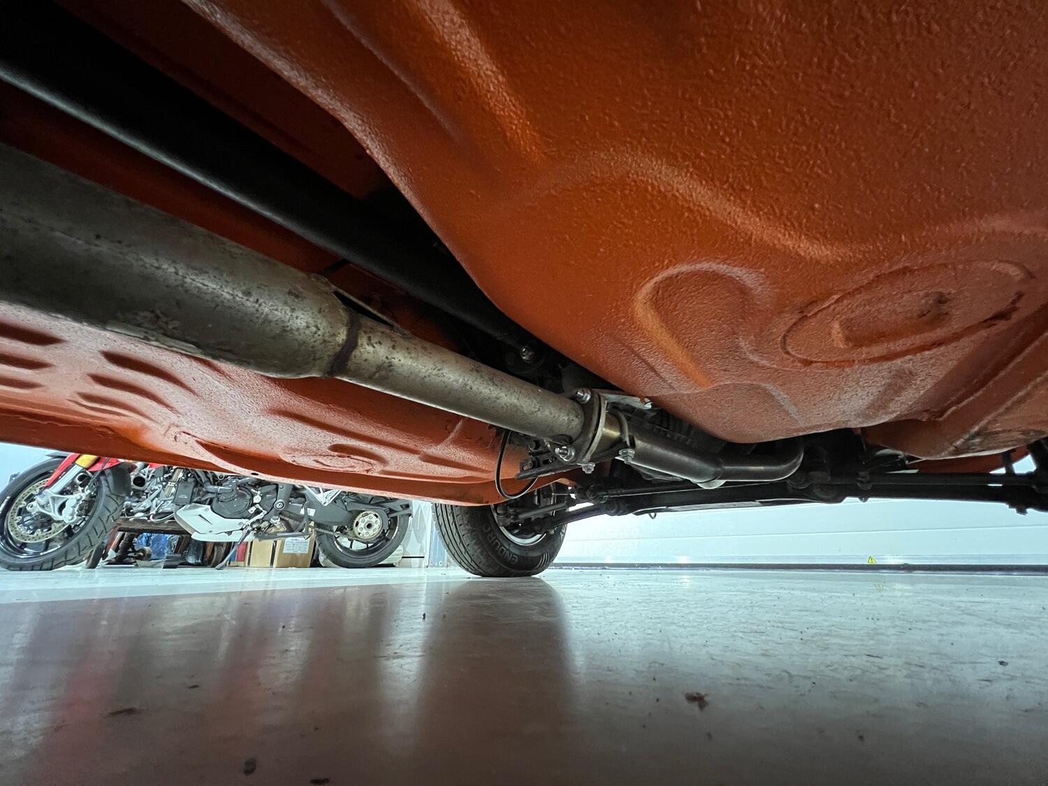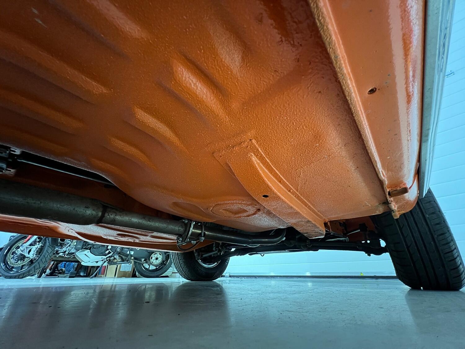 The outer shell was stripped to bare metal, patch panels were used to repair the quarter panels behind the rear wheel arches and the front ends of the sills and the wings were replaced. The complete underside was then sprayed with the latest Raptor twin pack underseal in matching Inka Orange before the shell was etch primed, undercoated and given its final coat of Inca Orange.
