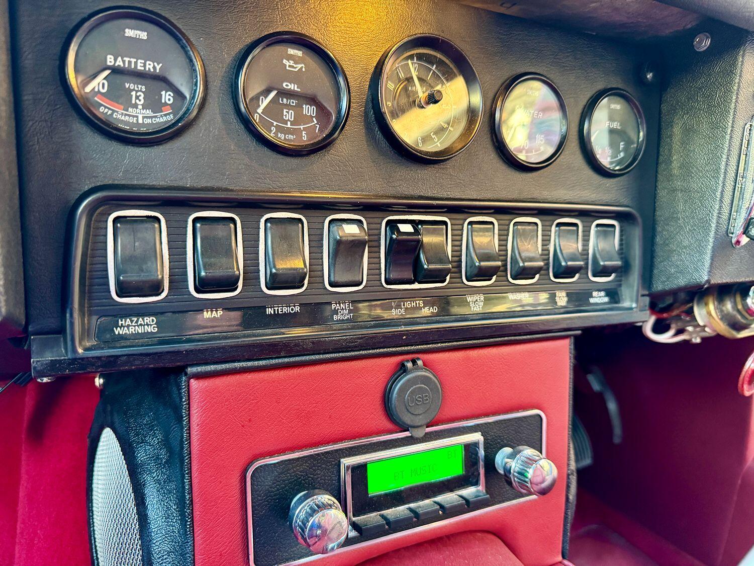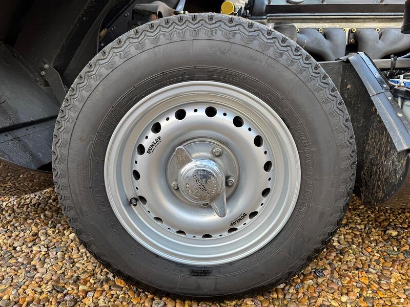 Mechanical alterations are limited to a 4 speed overdrive box replacing the original automatic, the US spec emissions controls have been removed in favor of a Stromberg twin carb set up and 15” genuine Dunlop light road wheels have been fitted wrapped with Dunlop SP Sport tyres.