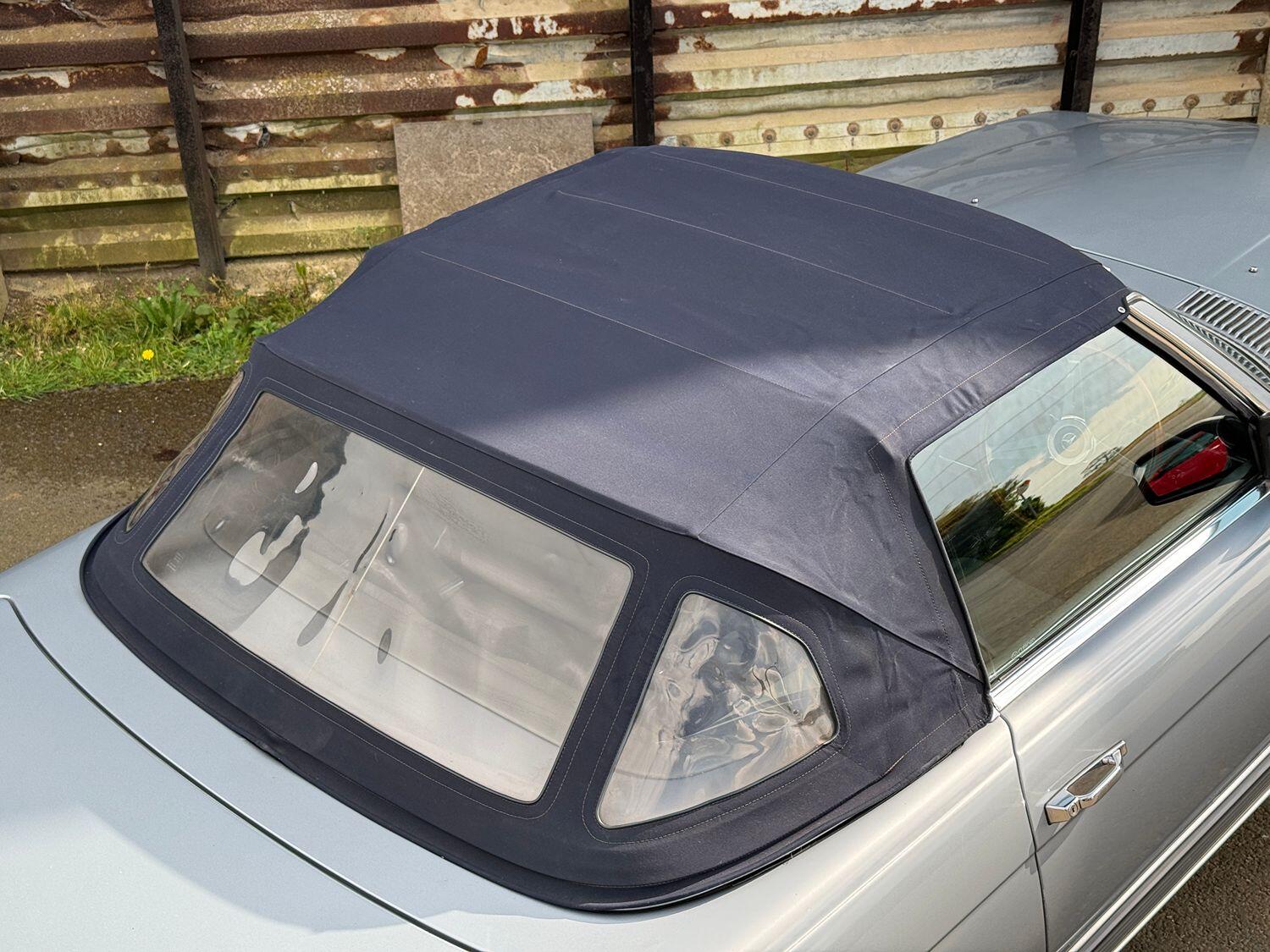 Finished in Metallic Silver Blue, with a matching colour coded hard top and a Navy fabric roof both are in excellent condition. The interior has been re-trimmed in Grey Leather with a contrasting piping.