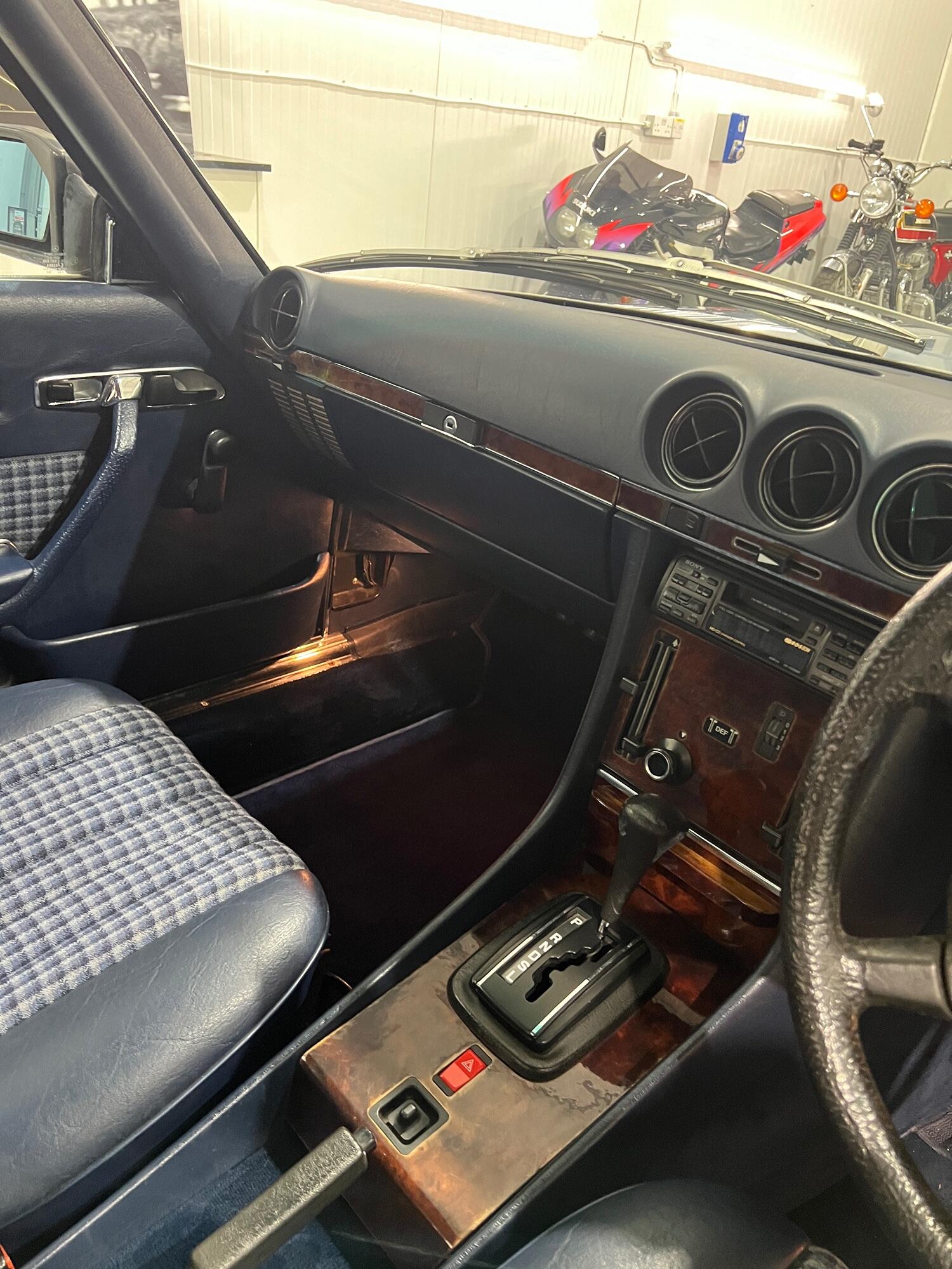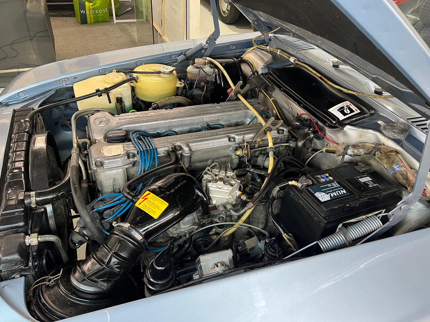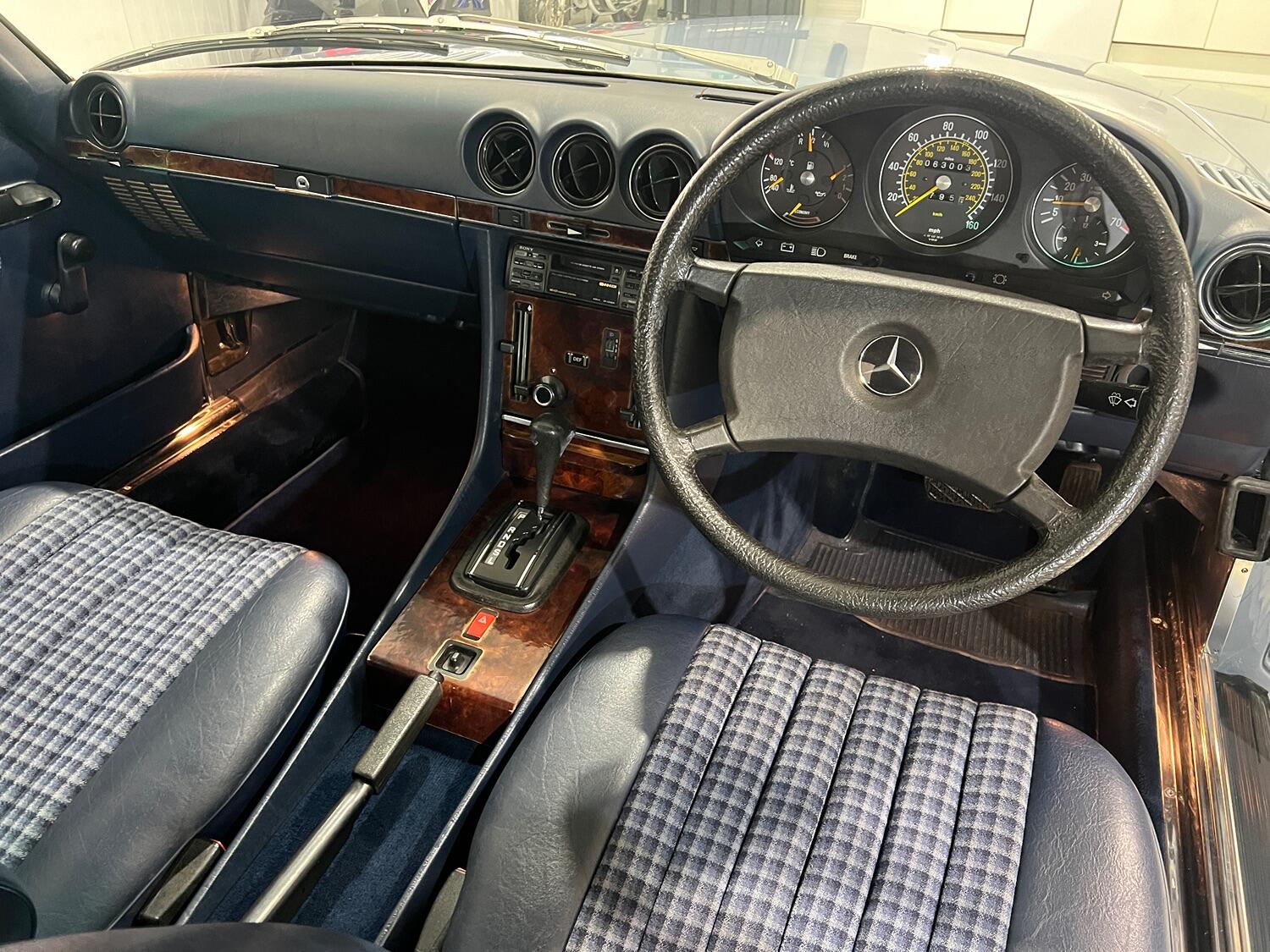 It starts briskly and immediately falls to idle, the engine runs smoothly and pulls very well. The gearbox shifts up and down the cogs swiftly and smoothly. I've owned both 6cyl and V8 SL's and personally find the straight six provides ample performance that suits the driving style well with the welcome benefit of surprisingly good fuel economy. The original service book is present with stamps from 1985 though 1994 and some recent services since. The previous owner is a farmer and his collection was looked after by his employees so although very well cared for there are not many garage invoices for servicing in his ownership.