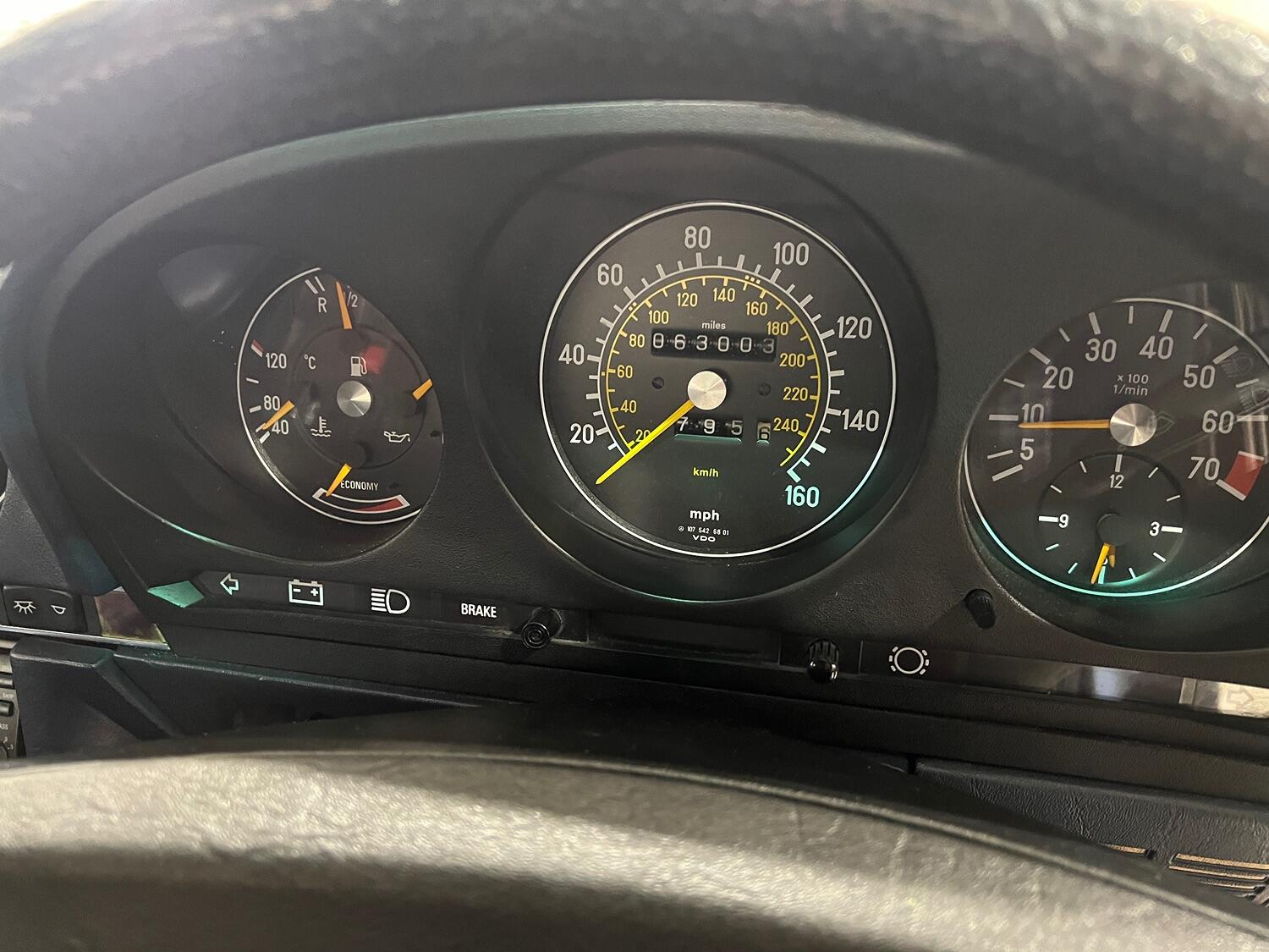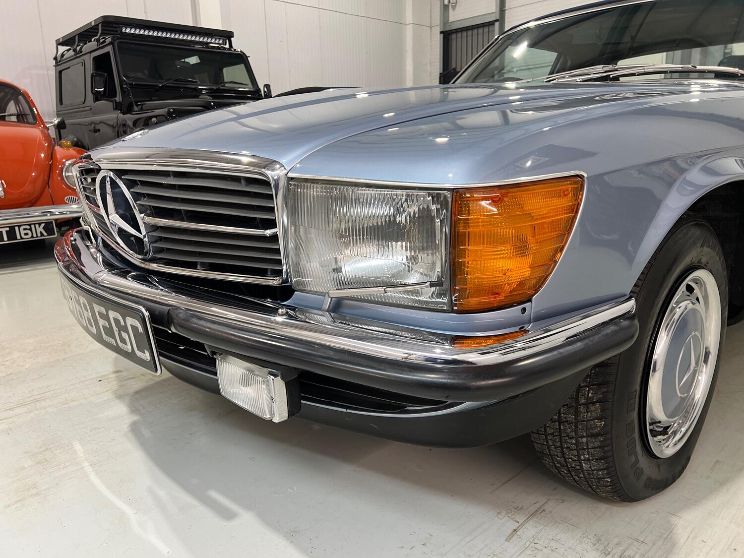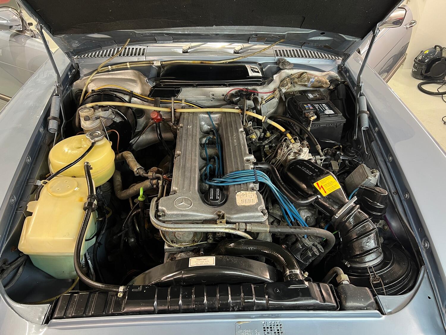 It starts briskly and immediately falls to idle, the engine runs smoothly and pulls very well. The gearbox shifts up and down the cogs swiftly and smoothly. I've owned both 6cyl and V8 SL's and personally find the straight six provides ample performance that suits the driving style well with the welcome benefit of surprisingly good fuel economy. The original service book is present with stamps from 1985 though 1994 and some recent services since. The previous owner is a farmer and his collection was looked after by his employees so although very well cared for there are not many garage invoices for servicing in his ownership.