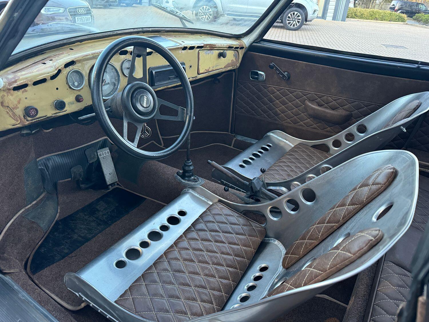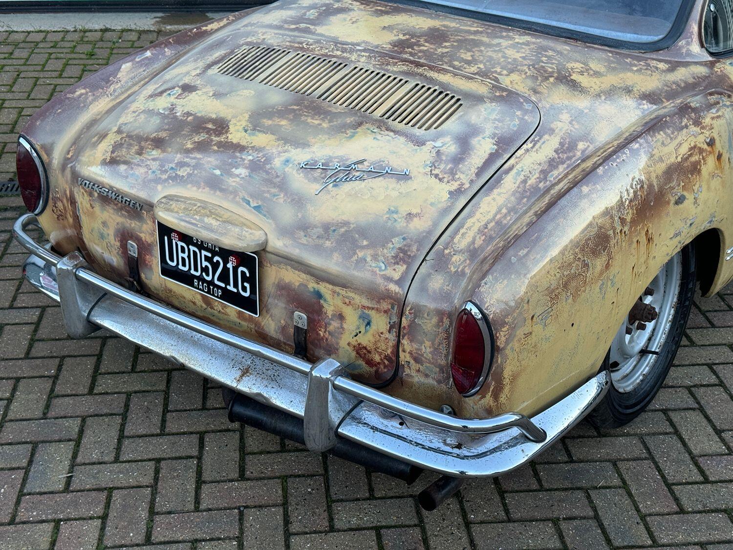 A really cool rat-look Ghia with a very solid shell with fresh floor pans, fully re-built 1600 and lots of new parts fitted. It was imported from California in 2020 and restored by OG Buswerks, please see a breakdown of works carried out. It has had two keepers since it came to the UK. Just had a service and checkover with new plugs & leads, flame thrower coil, and the brakes were adjusted. It’s on the button and drives really well, the ride height is adjustable front and rear.